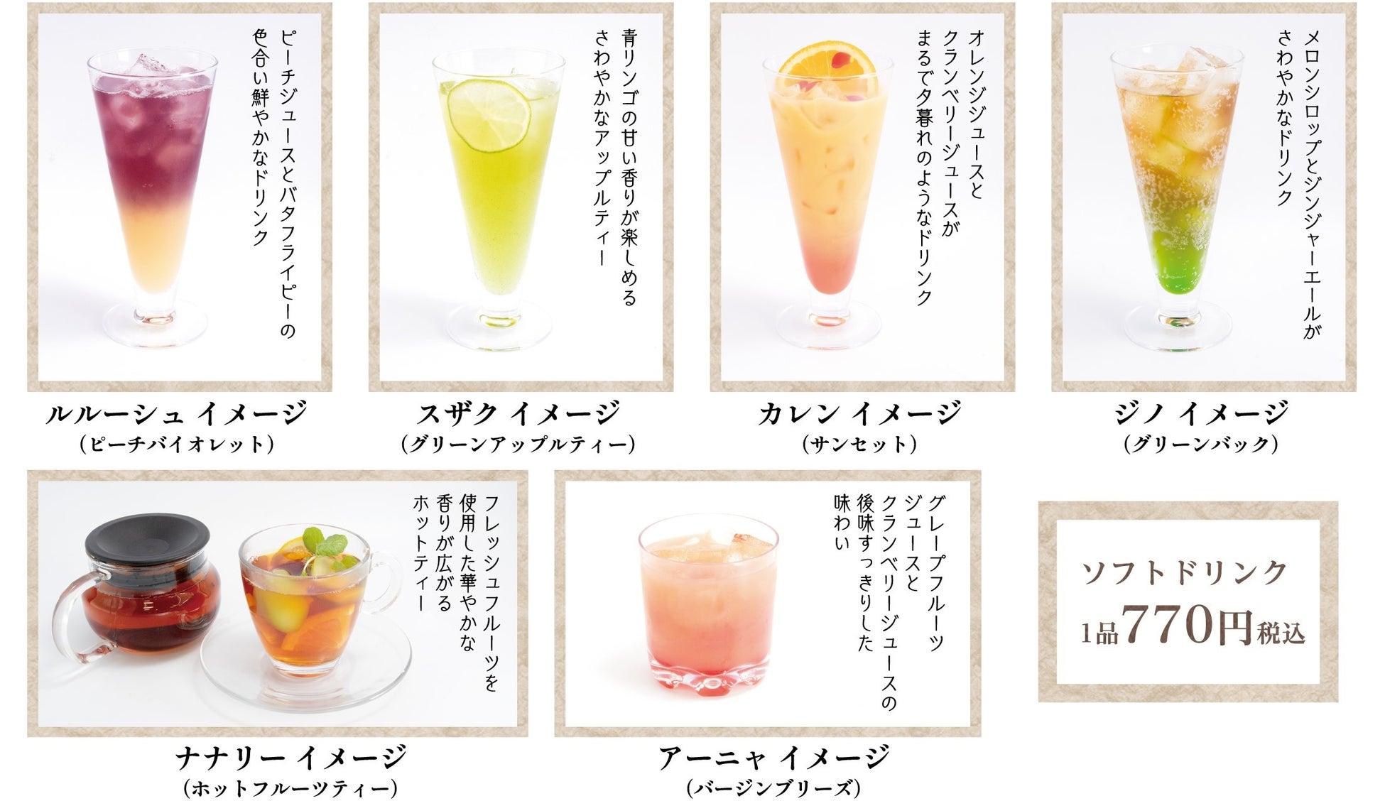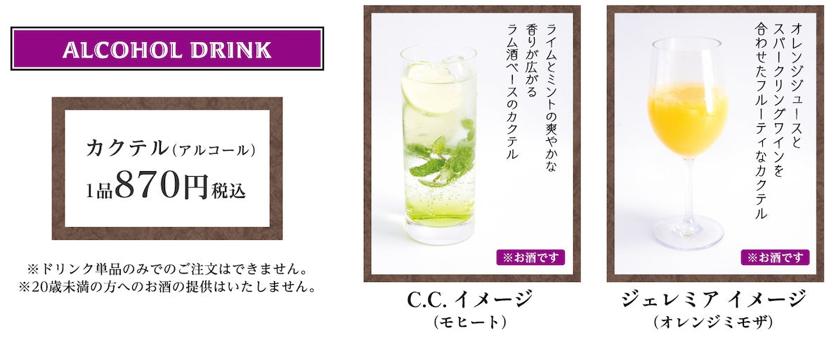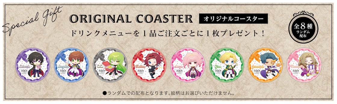 『コードギアス』のキャラクターをイメージしたドリンクをお楽しみいただけます。