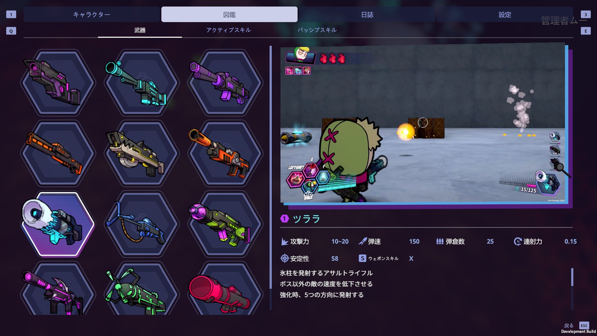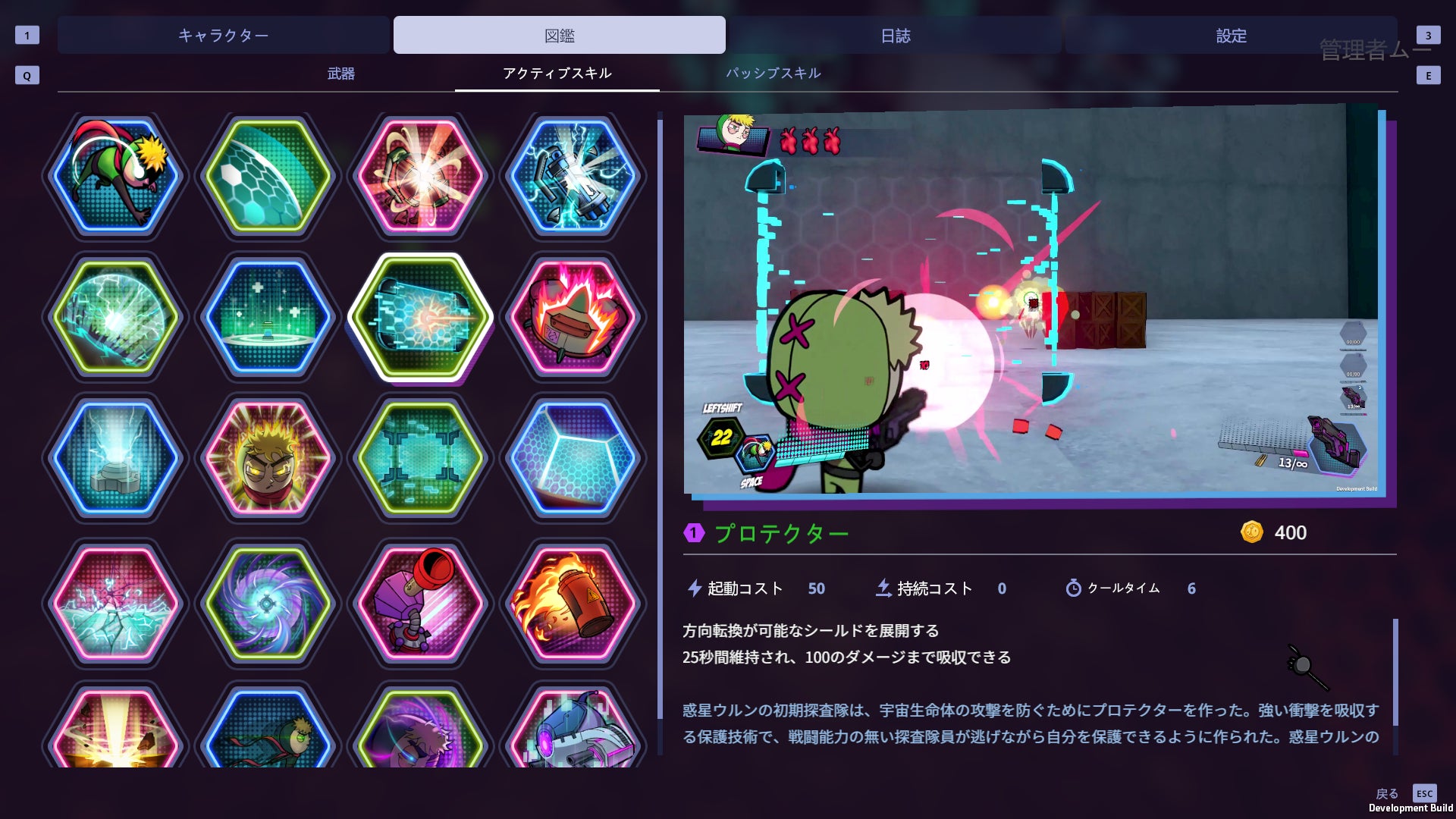 プレイヤーは12種類の武器、20種類のアクティブスキル、30種類のパッシブスキルを使い分ける事ができる。