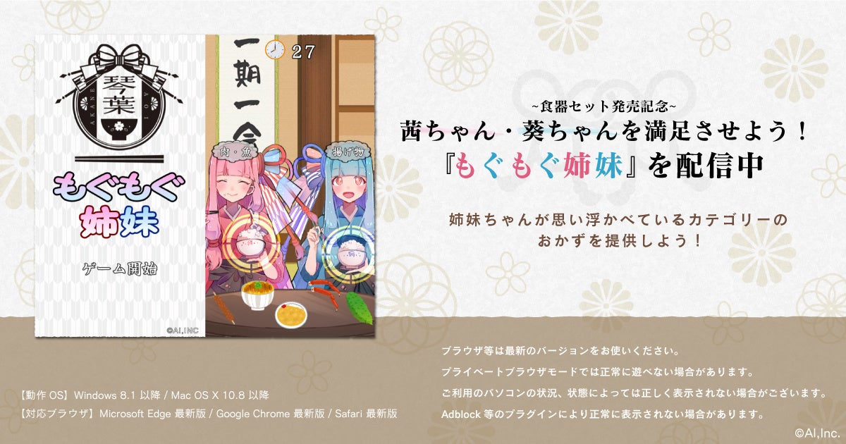 『琴葉 茜・葵』とのコラボグッズ「もぐもぐ食器セット」が6月16日(金)より受注開始!豪華特典にはBIGアクリルスタンドやオリジナルゲーム配信も