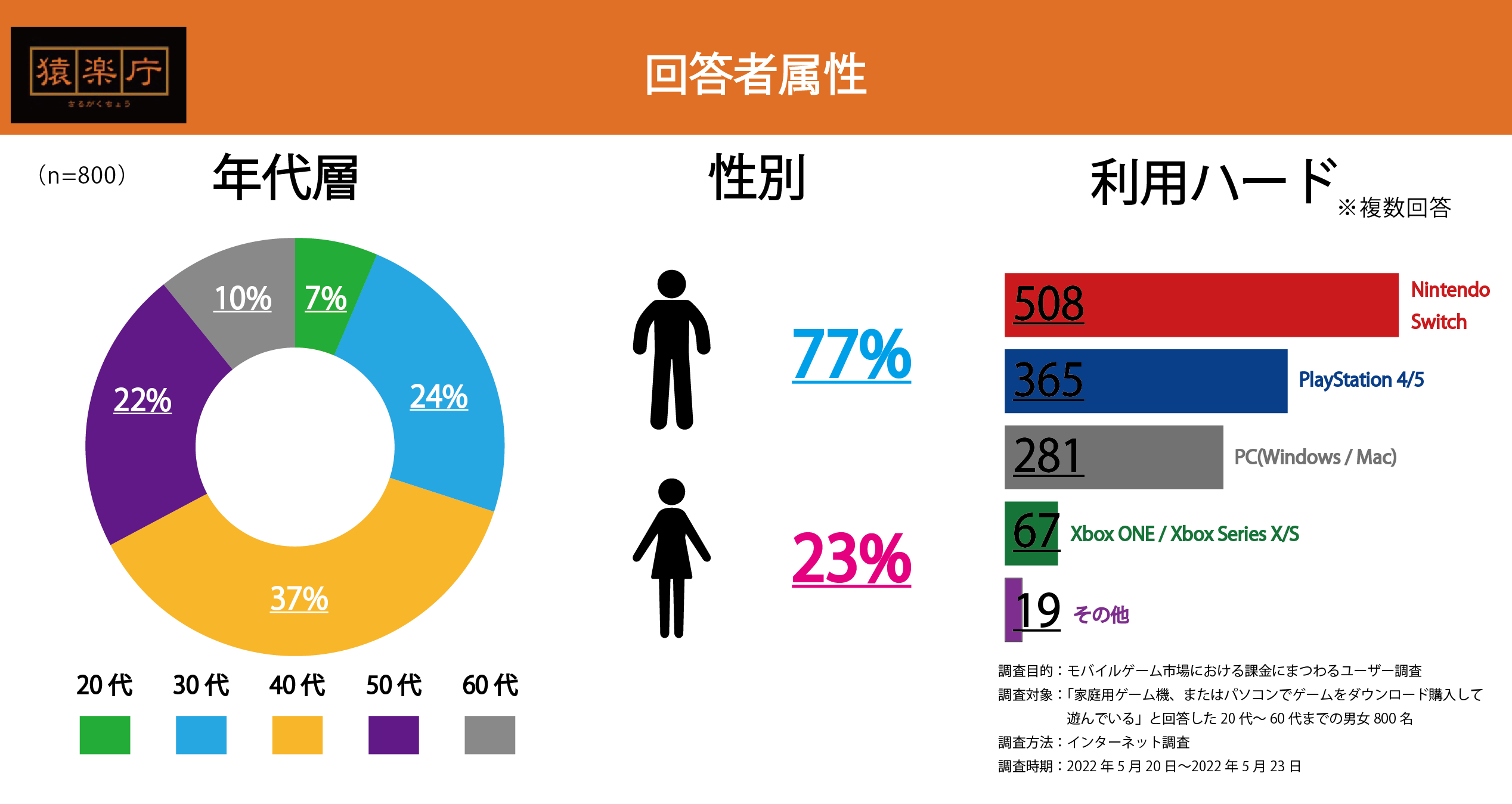 調査対象:2021年5月~2022年4月に家庭用ゲーム機またはPCにてダウンロード版ゲームを購入した実績のある全国20代~60代の男女800人