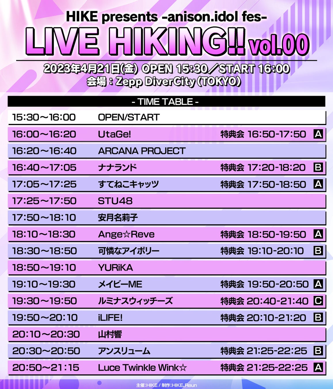 アニソン・アイドルフェスティバル「-anison.idol fes-LIVE HIKING!! vol.00」のタイムテーブル公開!