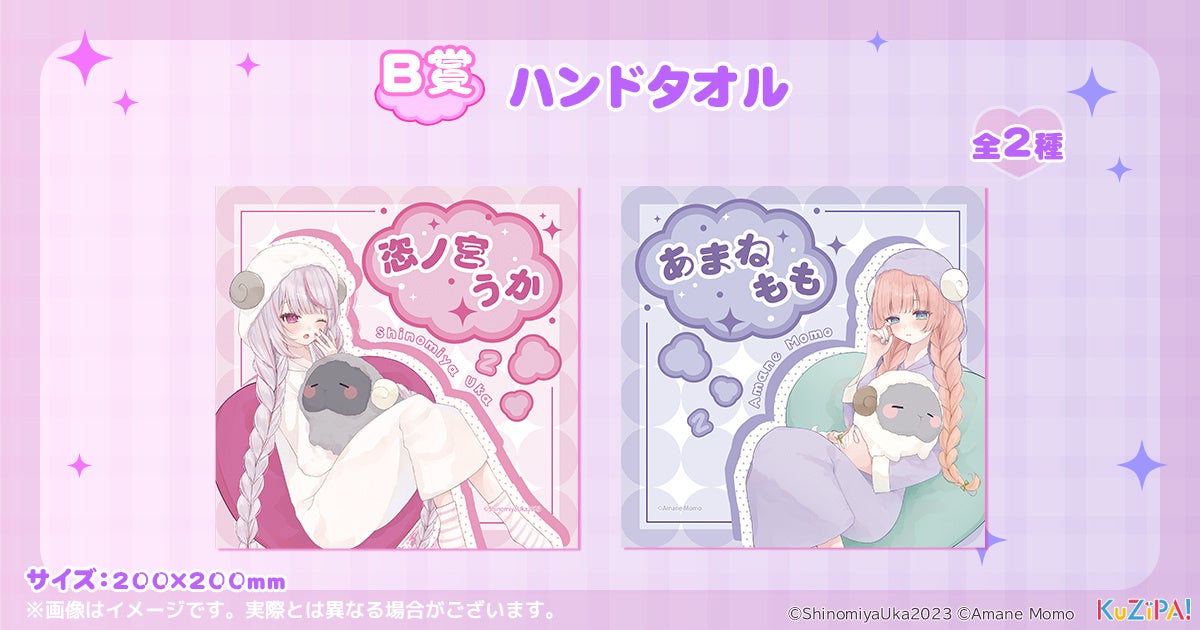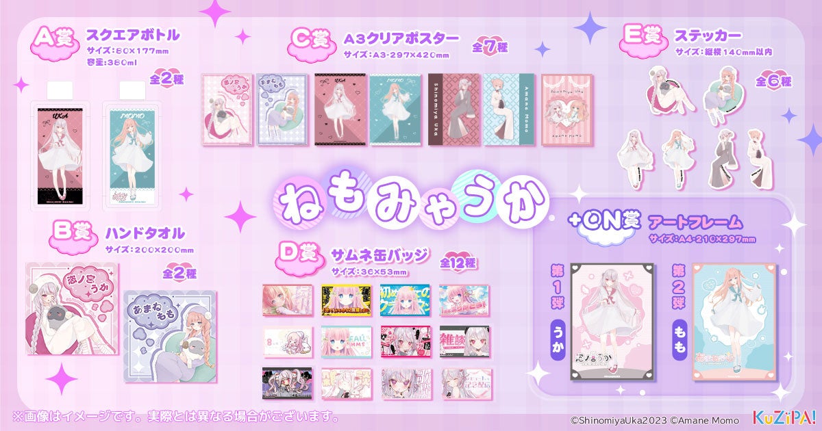 グッズは全てねもみゃうかの2人が考案。かわいらしさにあふれる2人の世界観を表現し、KuZiPA!先行で今回が初だしとなるイラストを8点使用しています。さらに2人の直筆サイン入りグッズ展開も史上初!初めてづくしの限定グッズを、この機会にぜひゲットしてください。