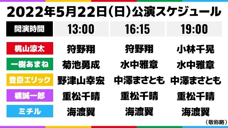 2022年5月22日(日)13:00公演/16:15公演/19:00公演