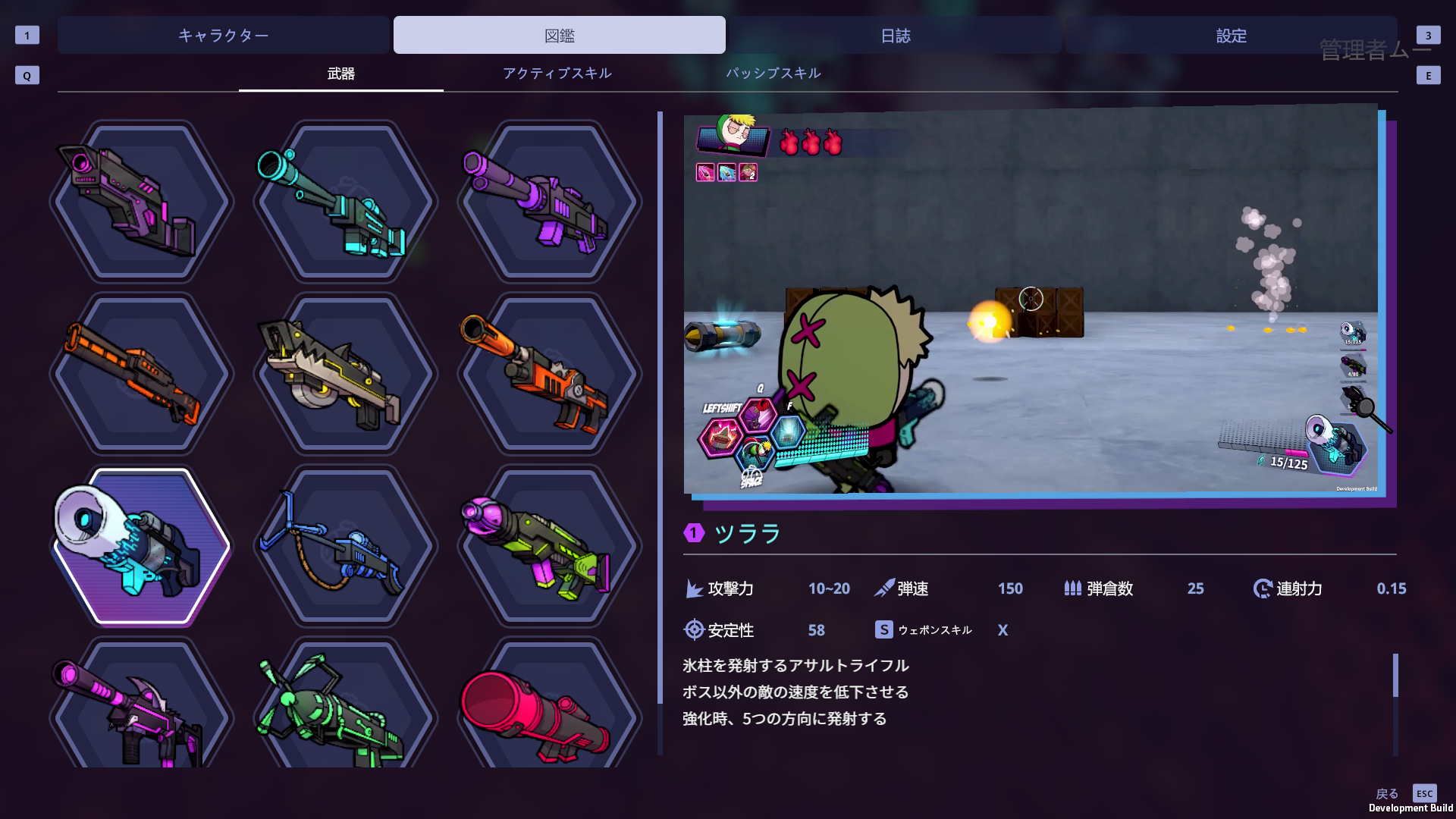 プレイヤーは12種類の武器、20種類のアクティブスキル、30種類のパッシブスキルを使い分ける事ができる。