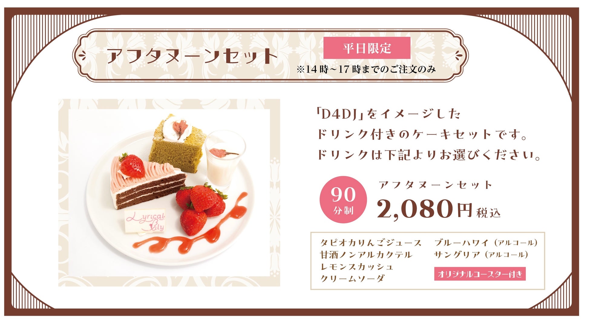 D4DJ All Mixをイメージしたフードとデザートプレートのスペシャルコースをお楽しみいただけます。