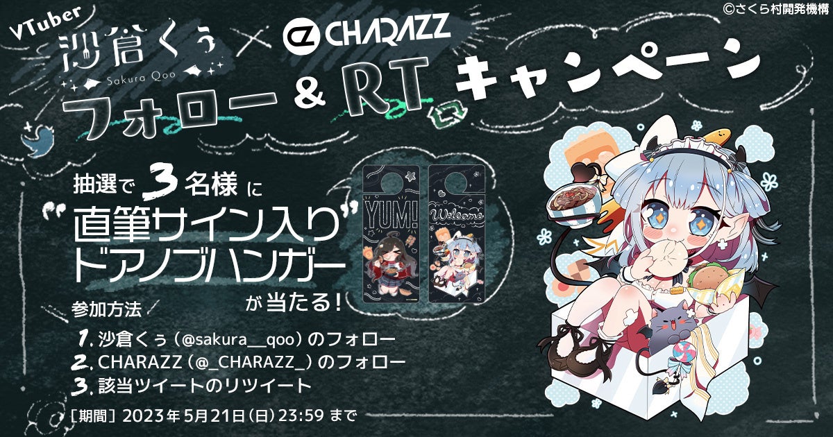 人気沸騰中の新人VTuber「沙倉くぅ」のオリジナルグッズが4月28日よりCHARAZZに登場! 直筆サイン入りドアノブハンガーが当たるTwitterキャンペーンも実施!