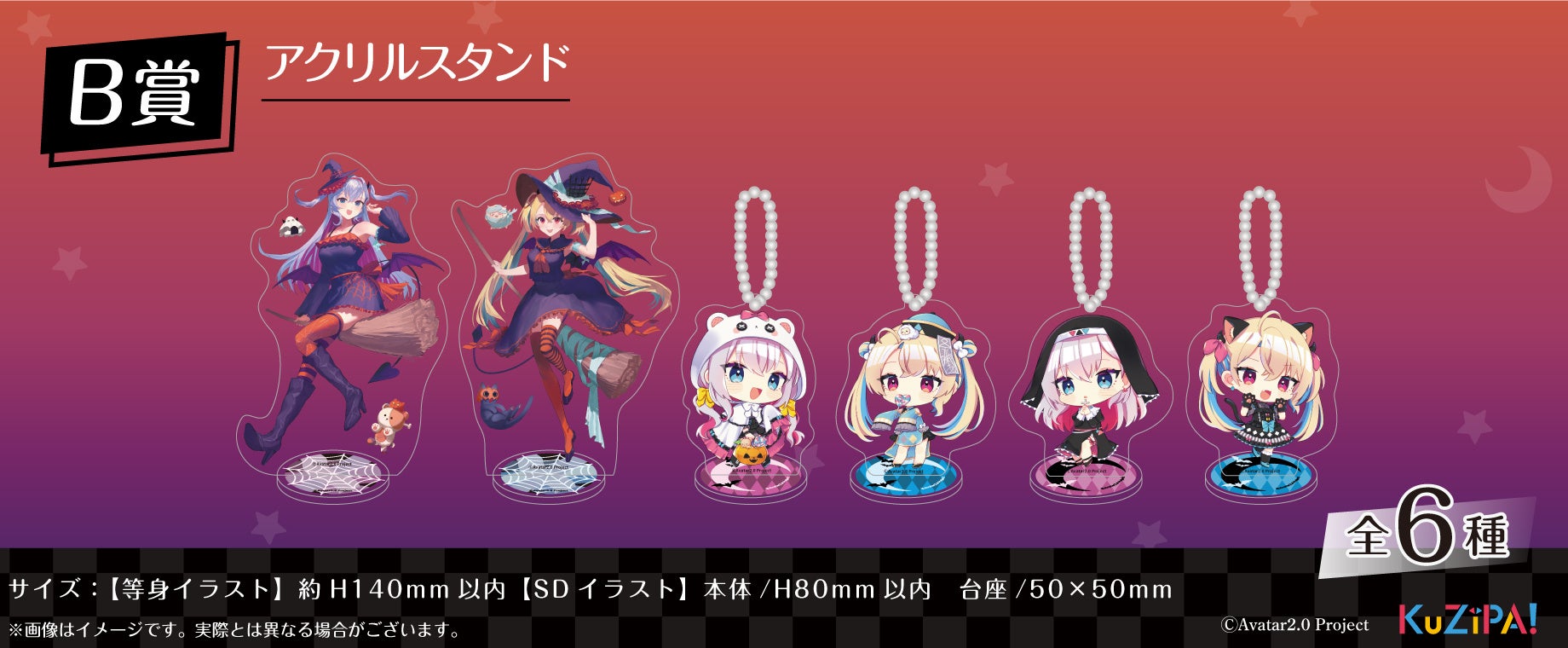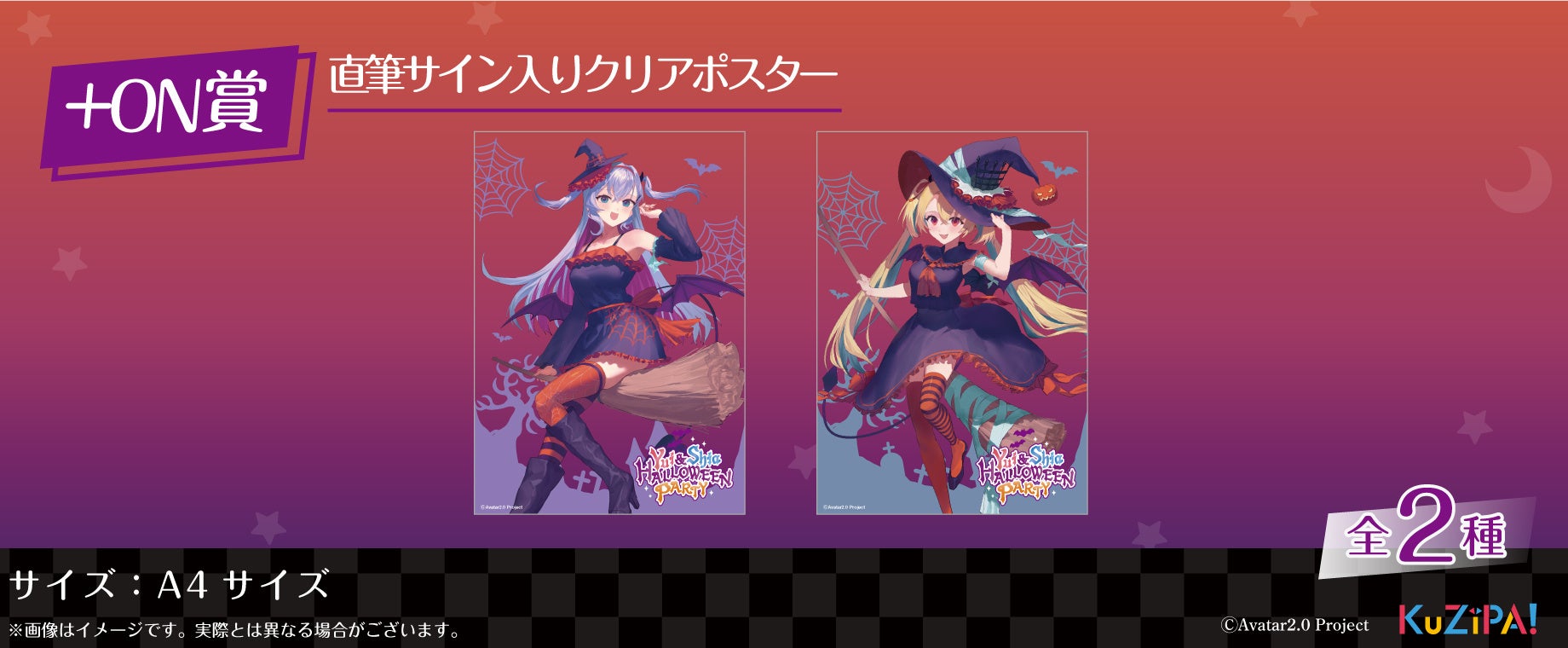 商品は、全身ファブリックポスター、アクリルスタンド、ラバーストラップ、57mm缶バッジ、オリジナルステッカー、「+On Challenge」景品の直筆サイン入りクリアポスターなど、ハロウィン仕様のクジパ限定描き下ろしデザインのアイテムを是非ゲットしてください!