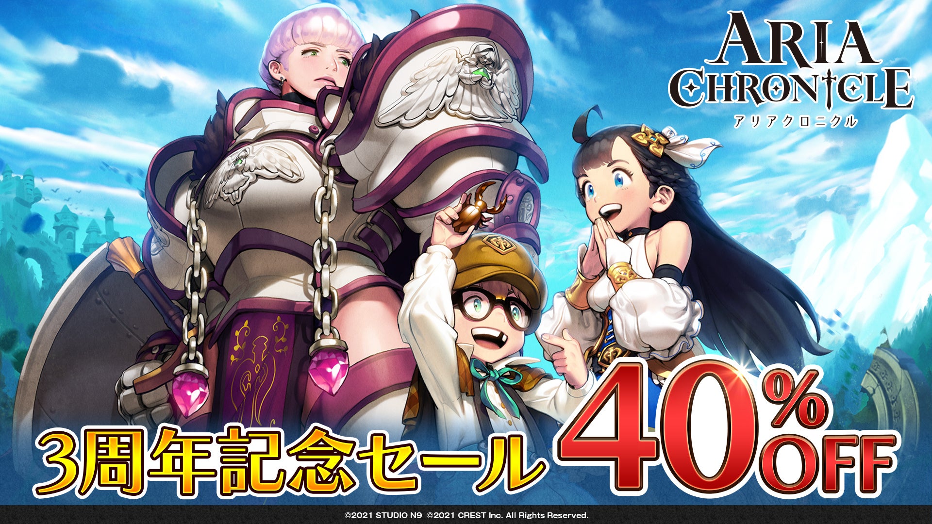 ターン制バトルRPGゲーム『ARIA CHRONICLE -アリアクロニクル-』が本日発売3周年!現在セールを実施中! 〜人気イラストレーター玲汰さんによる3周年記念イラストも公開〜